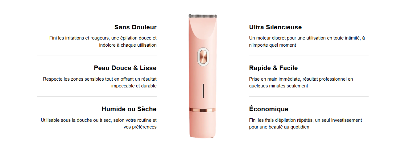 Tondeuse Bikini a été spécialement conçue pour offrir une coupe douce, précise et indolore , même sur les zones les plus délicates comme le maillot ou les aisselles.